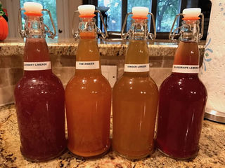 Finally Bottled Our First Batch We Ve Got Strawberry Peach Lemon Blueberry Ginger Strawberry Blueberry And Apple Cinnamon Started The Whole Scoby And Kombucha Brewing Process About A Month Or So Ago With
